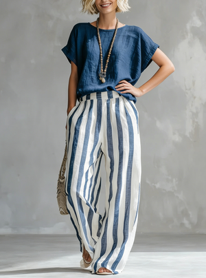 Startseite Cozy Loose-fit Striped Cotton-linen Two-piece Set ✨Plus Size Friendly XS-4XL