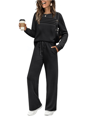 Inicio 🔥LAST DAY 45% OFF✨Women's Crew Neck Lounge Set - Soft Cotton Top & Drawstring Pants