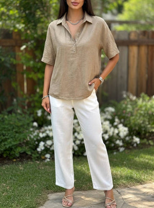 Women's Cotton Linen Polo Shirt – Casual Short Sleeve Summer Top