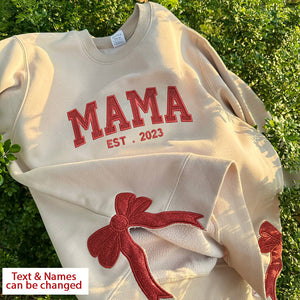 Christmas Embroidered Mama Grandpa Mimi Custom Text Glitter Bow Hoodie Sweatshirt T-Shirt